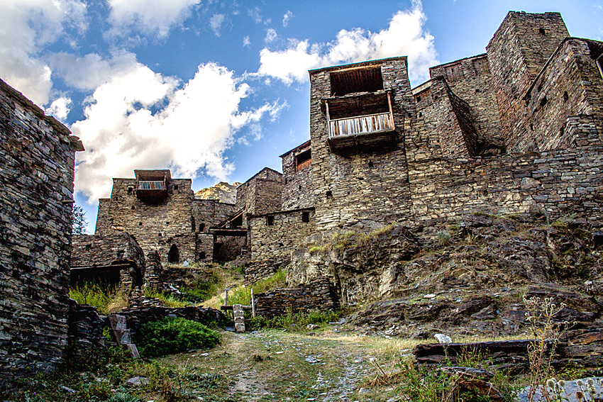 Nach Besichtigung der Kirchenruinen (19. Jh.) und einer Gerichtsstätte (18. Jh.) in Dartlo Wanderung über die Dörfer Mirgvela und Alt-Omalo nach Omalo, dem Hauptort der Provinz Tuschetien.