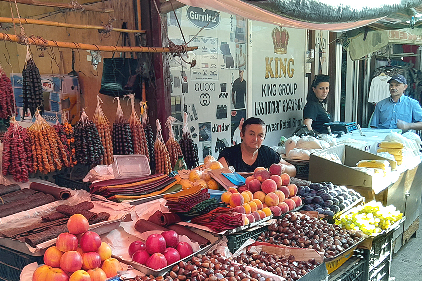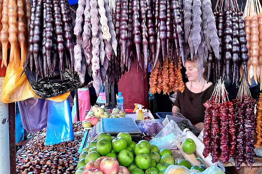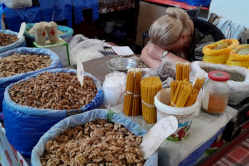 In Sugdidi hat es uns vor allem der herrliche Großmarkt angetan. Ein wilder Markt, wie es ihn in Georgien in dieser Größe sonst nirgendwo mehr gibt. Im Gegenteil, immer mehr dieser Märkte werden geschlossen oder von Supermärkten ersetzt, zum Beispiel in Tbilissi. In Sugdidi funktioniert der Markt allerdings noch, wohl vor allem wegen des großen Hinterlandes. Denn auf diesem Markt bekommt man neben den üblichen Lebensmitteln einfach alles, was man so im Alltag braucht.