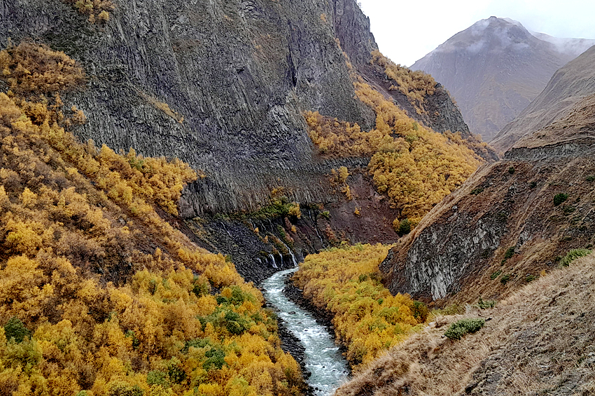 Mit einer kleinen privaten Gruppe hat ERKA-Georgien-Spezialist Rainer Kaufmann im Herbst 2023 eine knapp dreiwöchige Rundreise durch ganz Georgien geführt. Hier seine Foto-Reportage von dieser wirklich eindrücklichen Rundreise. Zunächst die Impressionen von der herbstlichen Truso-Schlucht bei Stepanzminda.