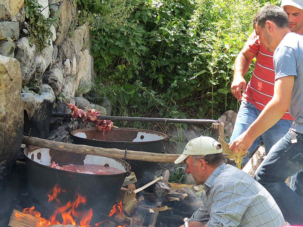 Die Litschanischi-Wallfahrt findet in einer kleinen Mutter-Gottes-Kapelle außerhalb des Dorfes statt, die über eine rund einstündige Wanderung bequem zu erreichen ist. Der Platz ist in Swanetien einmalig, es ist die einzige Tal-Lage, von der aus die drei heiligen Berge der Swanen – Ushba, Tetnuldi, Shkhara – zu sehen sind. Uralte Fundamente und Reste von Opfersteinen zeugen davon, dass sich hier schon zu vorchristlichen Zeiten eine Kultstätte befunden haben muss. Vom frühen Morgen an werden von den Dorfältesten Opferschafe in der kleinen Kirche gesegnet und dann neben der Kirche geschlachtet, wo die Familien des Dorfes dann ein großes Festmahl abhalten. Rückfahrt am frühen Nachmittag nach Mestia. Abendessen und Übernachtung in Mestia.